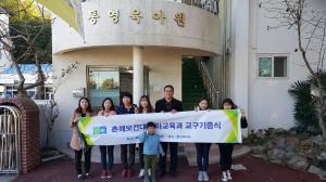 춘해보건대학교(춘장 김희진) 유아교육과(학과장 김정주)는 지난 18일 통영육아원에 2015년 특성화 전문대학 육성사업의 일환인 캡스톤 디자인을 통해 개발한 영유아 교구 30점을 어려운 아이들을 위해 기증했다.