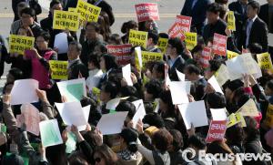 28일 오후 서울 여의도 국회 본청 앞에서 전국교육연대단체 등 관계자들이 교육재정 파탄해결 및 확대 촉구 국민서명 전달식 기자회견을 하고 있다. 사진제공=포커스뉴스