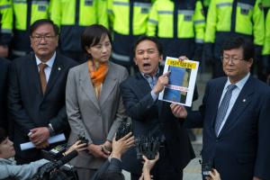 새정치민주연합 등 야당과 시민사회단체가 정부의 역사교과서 국정화 추진을 저지하기 위한 연대활동을 본격화 했다.새정치민주연합은 27일 오후 역사교과서 국정화 저지 투쟁을 시작한 이후 처음으로 국회 밖에서 집회를 갖는다.새정치민주연합은 이날 오후 6시 서울 광화문 광장에서 당 소속 국회의원 전원이 참석한 가운데 '국정교과서 반대 결의대회'를 연다.새정치민연합은 그동안 광화문광장 등 국회 밖에서 1인 또는 국회 상임위별로 소규모 시위를 벌여왔지만, 전체 의원이 참석하는 집회를 하는 것은 이번이 처음이다.새정치민주연합이 결의