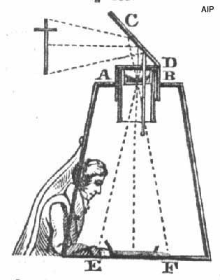사람들은 아주 오래 전부터 작은 구멍을 통해 들어온 빛이 ‘영상’을 만든다는 사실을 알고 있었습니다. 이 원리를 처음 발견한 사람이 유명한 아리스토텔레스라는 설도 있습니다. 이해를 돕기 위해 그림을 하나 보도록 하지요.