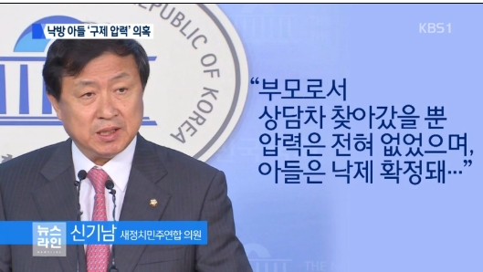 먼저 신 의원에게 제기된 의혹은 이렇습니다. 신 의원의 아들이 A대학 로스쿨 졸업시험을 통과하지 못해 내년도 변호사시험 응시가 어려워지자 신 의원이 로스쿨 원장을 찾아가 압력을 행사했다는 것입니다.