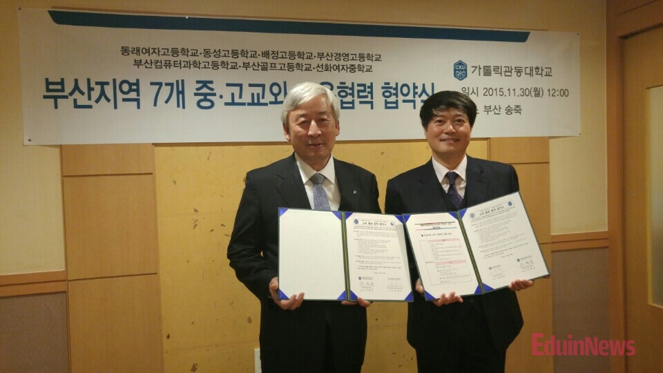 남동현 교장은 “이 시대의 학교는 지역사회를 넘어 전국적으로 뜻을 모아 글로벌 인재양성에 힘써야 한다”며 “오늘 첫 단추가 부산지역 학교들과 가톨릭관동대학교간 상생 발전의 시발점이 되었으면 한다”고 말했다.