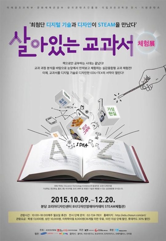 디지털 기술로 디자인한 교과서를 체험해볼 수 있는 '살아있는 교과서 체험전'이 9일부터 12월 20일까지 분당 코리아디자인센터 디자인 영재아카데미 STEAM 체험관에서 개최돼 학생과 학부모들의 뜨거운 반응을 보이고 있다.