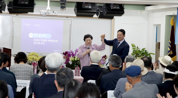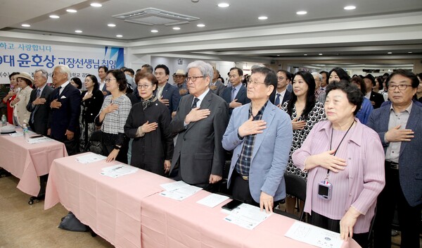 윤호상 교장의 취임을 축하하기 위해 각계 각층의 인사들이 참석하였다.