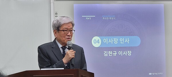 김헌규 이사장 대행은 인사말에서 윤호상 교장을 초빙한 배경으로, 서울미술고의 새로운 비상(飛翔)을 위해 학식과 덕망을 갖추고 학교 및 교육청에서 다양한 교육현장을 경험하고 학교경영리더십이 탁월한 교육자가 필요했다고 말했다.