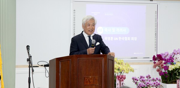 이어서 UN한국협회 회장이며 WCO 세계시민기구 총재인 곽영훈 박사는 윤호상 교장의 평소 교육철학과 실천에 대해 이야기 하면서 일관성을 가지고 오로지 학생성장과 교육발전을 위해 봉사와 헌신이 몸에 밴 교육자라고 영어로 축사를 하였다. 이어서 전 충북 송절중 김남신 교장과 서울광희중 유미경 교장, 숭실대 최은수 명예교수는 윤호상 교장과의 인연과 품성에 관한 일화를 말하였다.