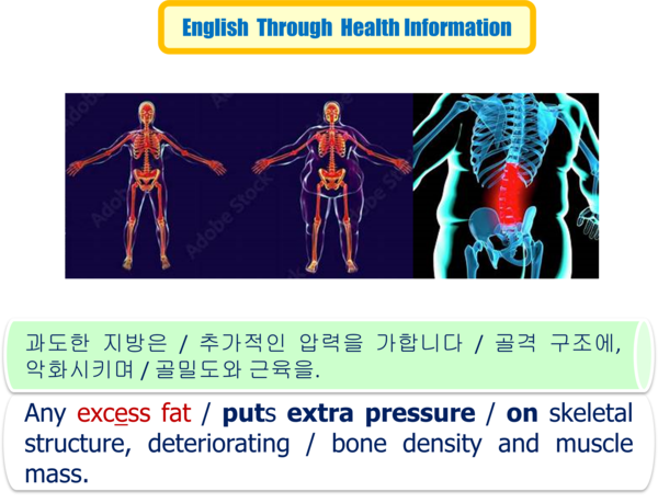 이전 기사보기 다음 기사보기 박병태 교수의 유닛영어 : 비만이 신체와 건강에 미치는 위험한 영향 [1. 관절 통증] 스크롤 이동 상태바 현재위치 교육자료 박병태 교수의 유닛영어 : 비만이 신체와 건강에 미치는 위험한 영향 [1. 관절 통증] 입력 2025.01.11 06:49 수정 2025.02.22 09:31 글자 크기 본문 글씨 키우기 본문 글씨 줄이기 프린트 인쇄하기 SNS 기사보내기 페이스북(으)로 기사보내기 트위터(으)로 기사보내기 카카오스토리(으)로 기사보내기 카카오톡(으)로 기사보내기 구글+(으)로 기사보내기 네이버밴드(으)로 기사보내기 네이버블로그(으)로 기사보내기 핀터레스트(으)로 기사보내기 URL복사(으)로 기사보내기 다른 공유 찾기 [에듀인뉴스(EduinNews) = 인터넷뉴스팀 ] 추천0반대0 저작권자 © 에듀인뉴스(EduinNews) 무단전재 및 재배포 금지 개의 댓글 회원로그인 작성자 비밀번호 댓글 내용입력 댓글 정렬 최신순 추천순 답글순 BEST댓글 BEST 댓글 답글과 추천수를 합산하여 자동으로 노출됩니다. 닫기 더보기 댓글삭제 삭제한 댓글은 다시 복구할 수 없습니다. 그래도 삭제하시겠습니까? 비밀번호 닫기 댓글수정 댓글 수정은 작성 후 1분내에만 가능합니다. 본문 / 400 비밀번호 닫기 내 댓글 모음 닫기