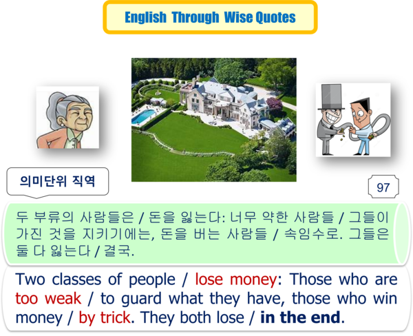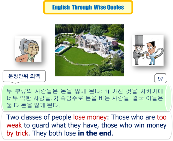 이전 기사보기 다음 기사보기 박병태 교수의 유닛영어 : 명언 [돈과 인생 관련 교훈 100가지 (25)] 스크롤 이동 상태바 현재위치 교육자료 박병태 교수의 유닛영어 : 명언 [돈과 인생 관련 교훈 100가지 (25)] 입력 2025.04.04 18:30 수정 2025.04.04 18:53 글자 크기 본문 글씨 키우기 본문 글씨 줄이기 프린트 인쇄하기 SNS 기사보내기 페이스북(으)로 기사보내기 트위터(으)로 기사보내기 카카오스토리(으)로 기사보내기 카카오톡(으)로 기사보내기 구글+(으)로 기사보내기 네이버밴드(으)로 기사보내기 네이버블로그(으)로 기사보내기 핀터레스트(으)로 기사보내기 URL복사(으)로 기사보내기 다른 공유 찾기 [에듀인뉴스(EduinNews) = 인터넷뉴스팀 ] 추천0반대0 저작권자 © 에듀인뉴스(EduinNews) 무단전재 및 재배포 금지 개의 댓글 회원로그인 작성자 비밀번호 댓글 내용입력 댓글 정렬 최신순 추천순 답글순 BEST댓글 BEST 댓글 답글과 추천수를 합산하여 자동으로 노출됩니다. 닫기 더보기 댓글삭제 삭제한 댓글은 다시 복구할 수 없습니다. 그래도 삭제하시겠습니까? 비밀번호 닫기 댓글수정 댓글 수정은 작성 후 1분내에만 가능합니다. 본문 / 400 비밀번호 닫기 내 댓글 모음 닫기