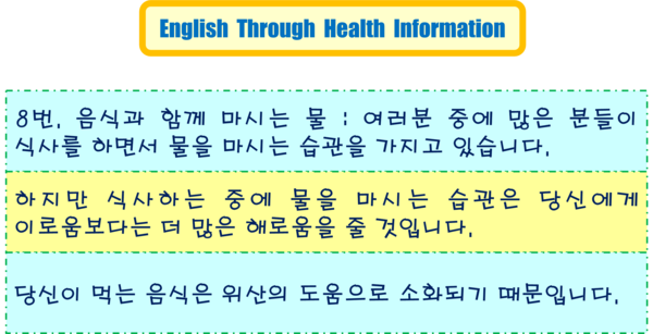 이전 기사보기 다음 기사보기 박병태 교수의 유닛영어: 함께 먹으면 해로운 음식들 [8. 식사와 함께 마시는 물] 스크롤 이동 상태바 현재위치 노출 박병태 교수의 유닛영어: 함께 먹으면 해로운 음식들 [8. 식사와 함께 마시는 물] 입력 2025.06.02 10:43 수정 2025.06.03 12:26 글자 크기 본문 글씨 키우기 본문 글씨 줄이기 프린트 인쇄하기 SNS 기사보내기 페이스북(으)로 기사보내기 트위터(으)로 기사보내기 카카오스토리(으)로 기사보내기 카카오톡(으)로 기사보내기 구글+(으)로 기사보내기 네이버밴드(으)로 기사보내기 네이버블로그(으)로 기사보내기 핀터레스트(으)로 기사보내기 URL복사(으)로 기사보내기 다른 공유 찾기 [에듀인뉴스(EduinNews) = 인터넷뉴스팀 ] 추천0반대0 저작권자 © 에듀인뉴스(EduinNews) 무단전재 및 재배포 금지 개의 댓글 회원로그인 작성자 비밀번호 댓글 내용입력 댓글 정렬 최신순 추천순 답글순 BEST댓글 BEST 댓글 답글과 추천수를 합산하여 자동으로 노출됩니다. 닫기 더보기 댓글삭제 삭제한 댓글은 다시 복구할 수 없습니다. 그래도 삭제하시겠습니까? 비밀번호 닫기 댓글수정 댓글 수정은 작성 후 1분내에만 가능합니다. 본문 / 400 비밀번호 닫기 내 댓글 모음 닫기