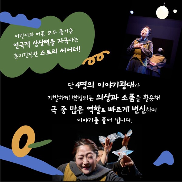 특히 이번 공연은 단 4명의 배우가 연기, 춤, 노래 등을 통해 빠르고 흥미진진한 역할 변화를 보여주는 것이 특징이다. 의상과 소품을 기발하게 활용하여 어린이뿐 아니라 성인 관객에게도 연극적 상상력과 재미를 선사한다.