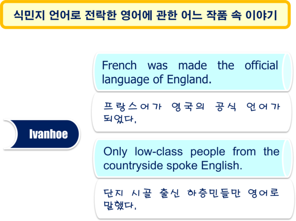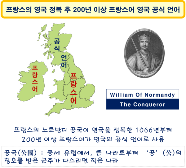 영국에서는 한 때 영어가 공식 언어가 아니라 프랑스어가 공식 언어였던 시기가 있었다. 1066년 프랑스어와 프랑스 문화로 무장한 노르망디 공국(公國)이 영국을 지배하기 시작하면서부터이다.