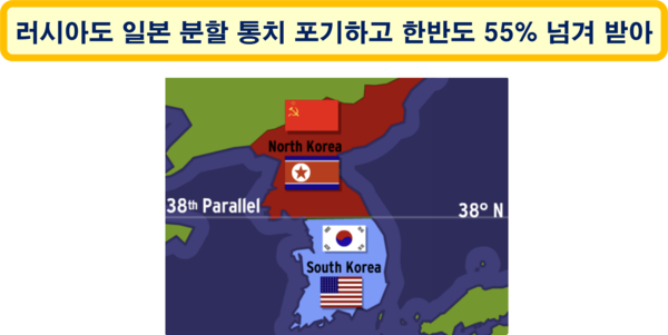 홋카이도 전역과 혼슈 일부의 분할 통치를 준비하고 있었던 소련은 한반도의 분할에 의한 신탁통치라는 예상하지 않은 미국의 제안에 혼란스러웠을 것이다. 그러나 소련은 일본의 러시아 공격에 다리 역할을 하였던 한반도를 지배하면서 일본을 견제하는 것도 나쁘지 않다고 생각했을 수 있다. 이에 따라 미국은 한반도에서 일본군을 몰아낸 대가로 러시아에 한반도의 55%(; 북한 전역)를 넘겨주게 된 것이다.