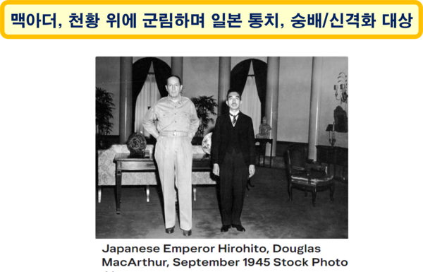 맥아더는 1945년부터 1년 동안 집정관(執政官)이 되어, 히로히토 천황 위에 군림하며, 일본을 통치하게 되었다. 2차 대전을 일으킨 전범 국가에 대한 감시와 감독의 일환이었지만, 일본 면책으로 미국이 받은 반대급부와 무관하지 않다. 일본 국민은 그를 숭배하며 신격화했다.