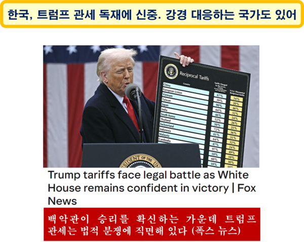 과거 미국이 조선의 영토를 분할하여 러시아에 넘기는 심히 불공정하고 불공평한 조치를 하였지만, 우리가 미국을 감정적으로 대하기는 쉽지 않은 것이 현실이다. 최근 미국 대통령 트럼프가 관세로 세계를 엄청난 혼란과 고통 속에 빠뜨렸고, 문제를 제기하는 나라에는 섬뜩할 정도의 협박을 하고 있다. 사전 양해 없이 자유무역협정(Free Trade Agreement)을 무효화시키고, 국제기구인 세계무역기구(World Trade Organization)를 무용지물로 만들어버린 트럼프의 관세 독재에 대하여 우리와는 다르게 대응하는 국가도 적지 않다.