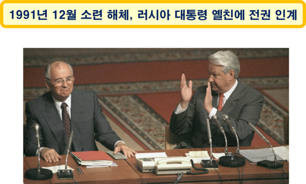 중-소 관계를 정상화한 고르바초프는 1991년 12월 25일 대통령직을 사임하고, 소련 지도부를 해체하였으며, 소련의 핵무기 발사 시스템을 포함한 전권을 러시아 대통령 보리스 옐친(Boris N. Yeltsin)에게 인계하였다.