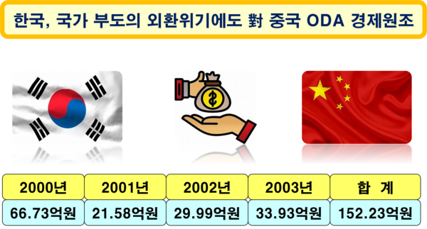 6.25 전쟁 당시 맥아더가 인천 상륙 작전으로 두만강과 압록강까지 진격하여 북한 전역을 수복할 수 있는 상황이었지만, 중국이 전쟁에 개입함으로써 전세는 역전되고 말았다. 연인원 135만명 이상의 중공군이 북한군을 지원하여 남북통일을 저지하고 한반도를 폐허로 만들었다. 그러나 6.25 전쟁 후 한국은 객관적 재기 불능 상태에서 기적적으로 일어섰고, 한반도를 유린하였던 중국을 돕는 데 주저하지 않았다. 중국을 극심한 가난으로부터 탈출시키기 위한 OECD의 노력에 한국은 동참하였을 뿐만 아니라, 국가 부도의 외환위기 속에서도 중국에 대한 공적개발원조(ODA)를 멈추지 않았다. (통계 : 한국의 공적개발원조(ODA) 정책연구 - 대 중국 사례를 중심으로 -)