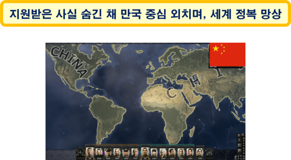 최빈국 시절 다른 국가로부터 엄청난 자금과 기술 원조를 받아 경제 대국이 될 수 있었지만, 인민들에게는 그러한 사실을 전혀 알리지 않은 채, 한국 등 아시아 국가들은 물론 세계의 많은 국가들이 중국으로부터 큰 은혜를 입은 것처럼 선전하고 있다. 만물 중국 기원설까지 전파하며, 지금처럼 힘이 있을 때 세계를 정복하지 않으면 다시 정복당하게 된다는 생각을 하는 중국은 심각한 피해망상에 이른 듯하다.