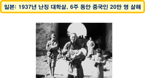 난징 대학살에 대한 끔찍한 현장은 아직도 중국인의 기억 속에 생생하다. 중일 전쟁 때인 1937년 12월부터 6주 동안 중화민국의 수도인 난징을 점령한 일본 제국이 군대를 동원해 중국 한족 여성들을 무차별 강간하고 학살하는 등 중국인 약 20만 명을 살해한 비극적인 사건이었기 때문이다.