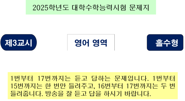 이전 기사보기 다음 기사보기 박병태 교수 [수능 지원] (CSAT 영어 2025-1) 스크롤 이동 상태바 현재위치 노출 박병태 교수 [수능 지원] (CSAT 영어 2025-1) 입력 2025.08.07 10:28 수정 2025.09.05 19:53 글자 크기 본문 글씨 키우기 본문 글씨 줄이기 프린트 인쇄하기 SNS 기사보내기 페이스북(으)로 기사보내기 트위터(으)로 기사보내기 카카오스토리(으)로 기사보내기 카카오톡(으)로 기사보내기 구글+(으)로 기사보내기 네이버밴드(으)로 기사보내기 네이버블로그(으)로 기사보내기 핀터레스트(으)로 기사보내기 URL복사(으)로 기사보내기 다른 공유 찾기 [에듀인뉴스(EduinNews) = 인터넷뉴스팀 ] 추천0반대0 저작권자 © 에듀인뉴스(EduinNews) 무단전재 및 재배포 금지 개의 댓글 회원로그인 작성자 비밀번호 댓글 내용입력 댓글 정렬 최신순 추천순 답글순 BEST댓글 BEST 댓글 답글과 추천수를 합산하여 자동으로 노출됩니다. 닫기 더보기 댓글삭제 삭제한 댓글은 다시 복구할 수 없습니다. 그래도 삭제하시겠습니까? 비밀번호 닫기 댓글수정 댓글 수정은 작성 후 1분내에만 가능합니다. 본문 / 400 비밀번호 닫기 내 댓글 모음 닫기