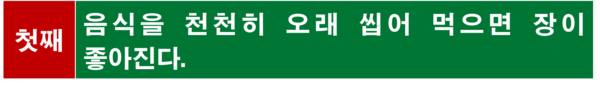 십수 년 전에 유명 방송사의 건강 관련 프로그램에서 이름 모를 질병으로 생명이 위태로운 환자가 단지 음식을 천천히 오래 씹어 먹은 덕분에 포기했던 생명을 되찾았다는 방송이 많은 시청자들을 놀라게 했던 적이 있다. 그 환자는 한국에서의 치료를 포기하고 미국으로 건너갔고, 그곳에서도 이렇다 할 치료법을 찾지 못해 희망을 접은 채 다시 한국으로 돌아오려던 어느 날이었다.