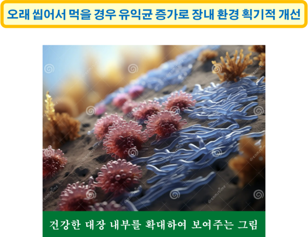 우리의 몸이 아프게 되는 가장 큰 이유는 몸속 혈액이 더러워지기 때문이다. 그리고 우리 몸의 혈액이 가장 빨리 더러워지는 때는 장내 음식이 부패할 때이다. 식사 후 또는 밤늦은 야식 후 소화가 충분히 되지 않은 상태에서 잠을 자는 경우 장내 음식이 부패하고, 이러한 일이 반복될 경우 혈액이 혼탁해지면서 몸에 이상이 오게 된다. 따라서 몸을 아프지 않게 하기 위해서는 몸속 혈액을 깨끗하게 유지해야 하고, 몸속 혈액을 깨끗하게 유지하기 위해서는 우리의 장을 건강하게 해야 한다. 누룽지와 같이 습기가 거의 없는 음식을 천천히 오래 씹어 먹을 경우 장내에 유익한 미생물들이 비교적 빠른 속도로 증가하면서 장의 내부가 건강하게 된다. 장이 건강하게 되면 피가 깨끗해진다. 따라서 몸도 따뜻해지고, 정신도 맑아지며, 기분도 좋아지고, 신진대사도 원활하게 되는 것이다.
