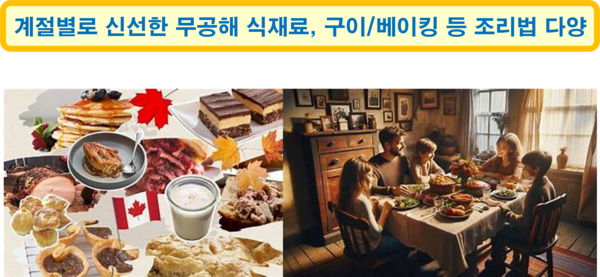 캐나다 식문화는 다문화적 배경과 신선한 식재료 그리고 지역별 특색이 어우러진 독특한 요리 전통을 자랑한다. 계절별로 신선한 재료와 구이, 베이킹 등의 조리법이 발달했으며, 패스트푸드 문화도 함께 자리잡고 있다. 퀘벡의 국민 음식으로 감자튀김에 그레이비 소스와 치즈 커드를 얹은 푸틴(Poutine)은 캐나다 전역에서 사랑을 받으며, 메이플 시럽 등 고유 음식과 다문화적 다양성이 어우러진 것이 가장 큰 특징이다.