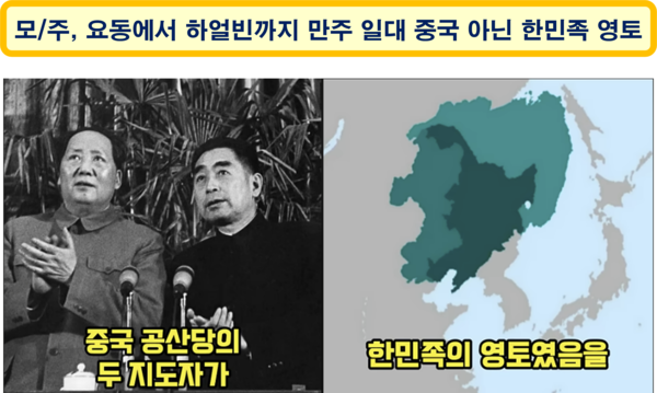 모택동과 주은래는 공식 석상에서 요동에서 하얼빈에 이르는 만주(滿洲) 일대가 중국의 영토가 아닌 한민족의 영토였음을 명확히 하고, 고구려(B.C.107~A.D.668)와 고구려를 계승한 발해(698~926)의 역사도 한민족의 역사임을 인정했다. 발해의 영토는 한반도 북부에서 중국 동북 지역의 요녕성, 길림성, 흑룡강성과 러시아의 연해주 지역에 이른다. 이러한 사실은 시진핑(習近平)이 적극 추진하였던 동북공정(東北工程)을 정면으로 반박한 것이 된다. [이상 원문 출처: (유튜브) 중국이 한국에 숨기는 모택동의 충격 증언]