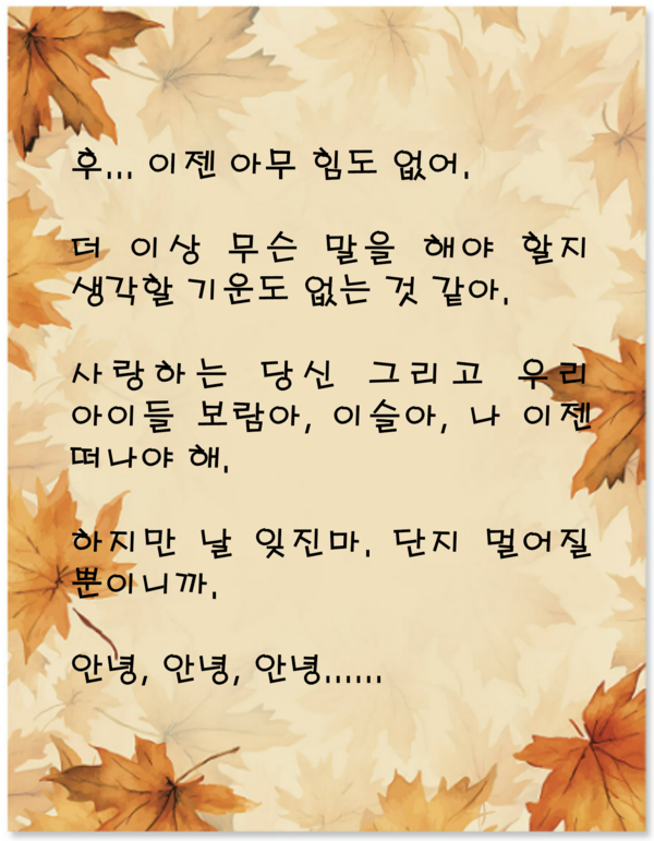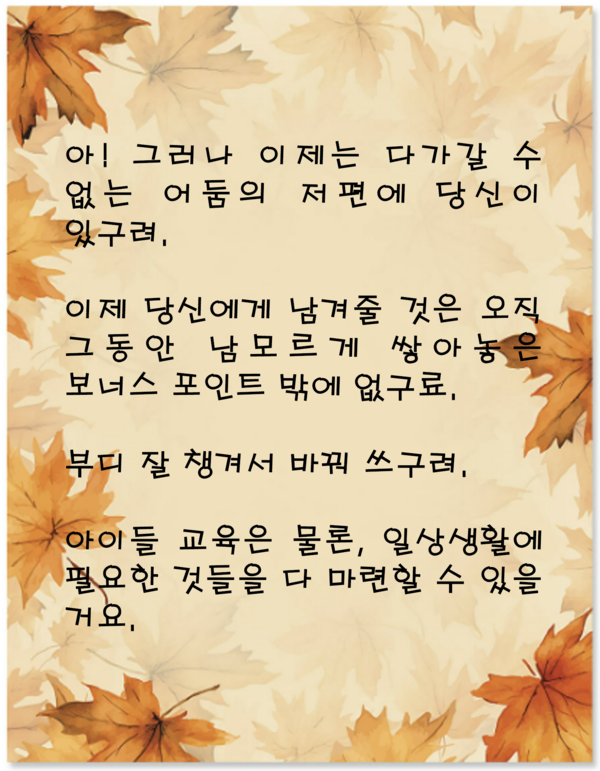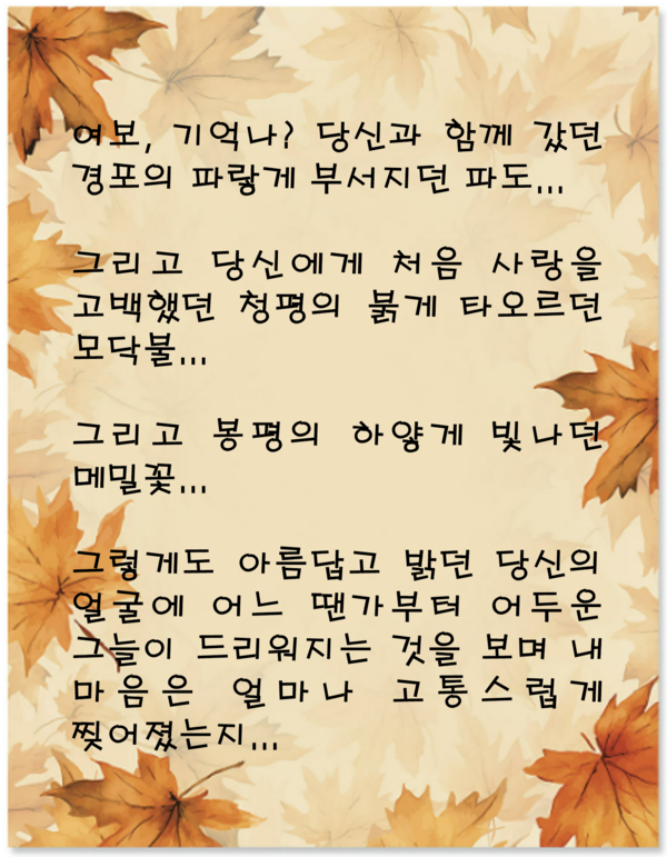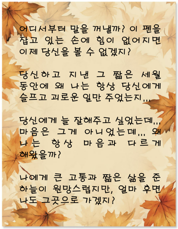 (원문 : 당신에게 남기는 마지막 편지 – 2019년 어느 날짜 중앙일보. 그림 : 야후, AI Google Studio)