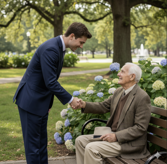 미국 에모리대학교(Emory University) 재직시절 제임스 레이니 (James Rainey) 교수는 평소 건강을 위해 매일 걸어서 출퇴근을 하였다. 여느 때와 마찬가지로 출퇴근을 하던 중에 그는 집 앞 벤치에 쓸쓸하게 혼자 앉아 있는 노인을 발견하게 된다. 평소 외향적인 성격인 레이니 교수는 노인에게 다가가 다정하게 인사를 건넸다.