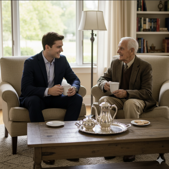 그 후에도 시간이 날 때마다 레이니 교수는 그 노인을 찾아가 말벗이 되어 주기도 하고, 커피도 함께 마시며, 2년여 동안 친하게 지냈다. 그러던 어느 날 출근길에 그 노인이 보이지 않자 걱정이 된 레이니 교수는 노인의 집을 찾아가 보았고, 노인이 전날 사망했다는 사실을 알게 된다.